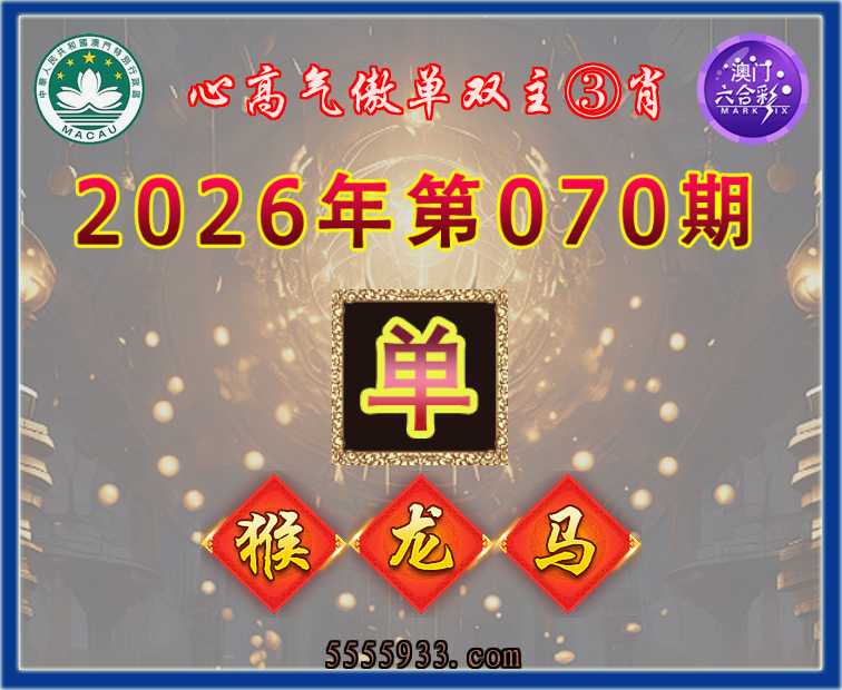 070期:《心高气傲》 单双主③肖-猴龙】开:马25